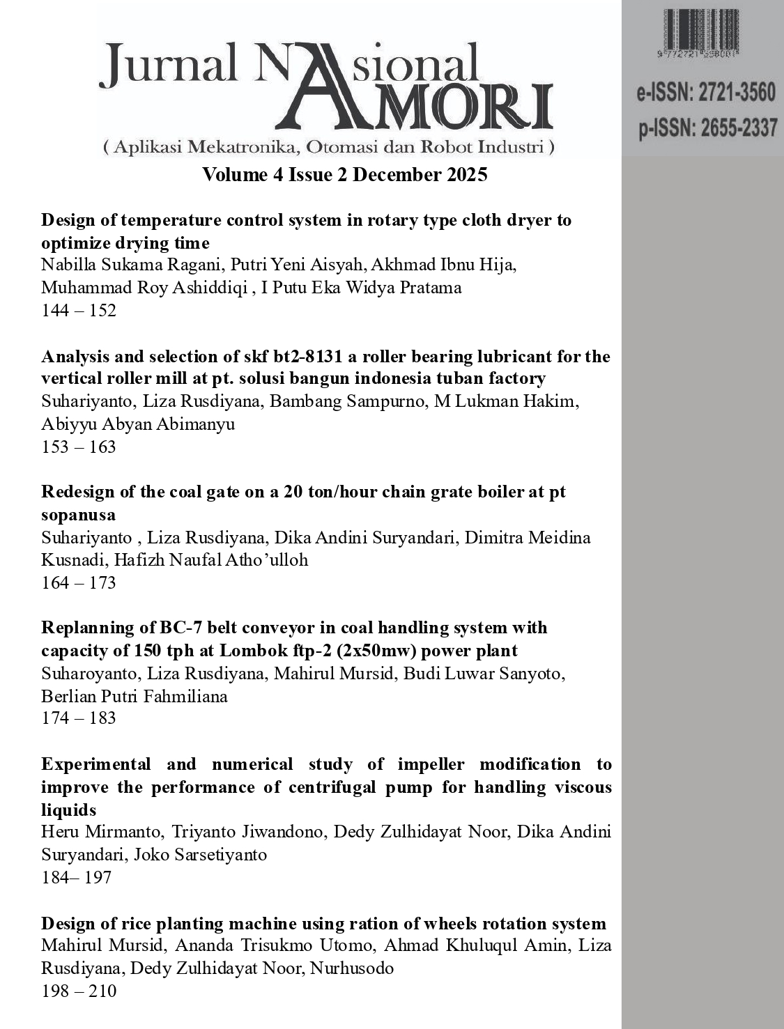 Jurnal Nasional Aplikasi Mekatronika, Otomasi dan Robot Industri (AMORI)
