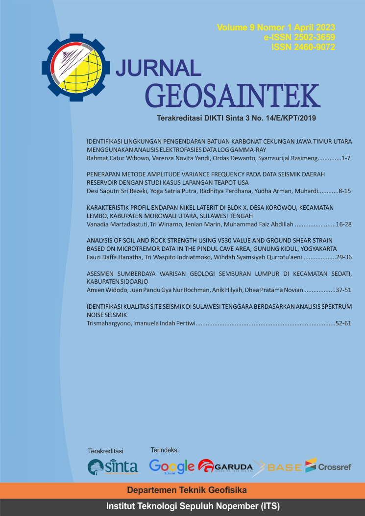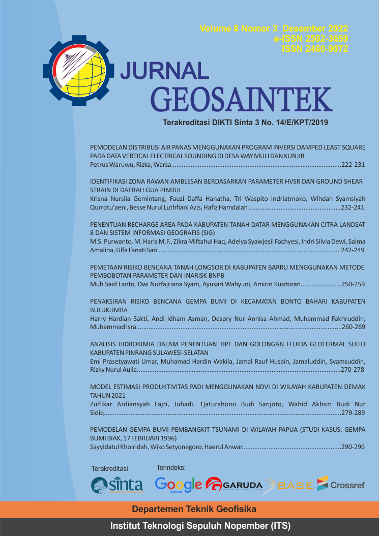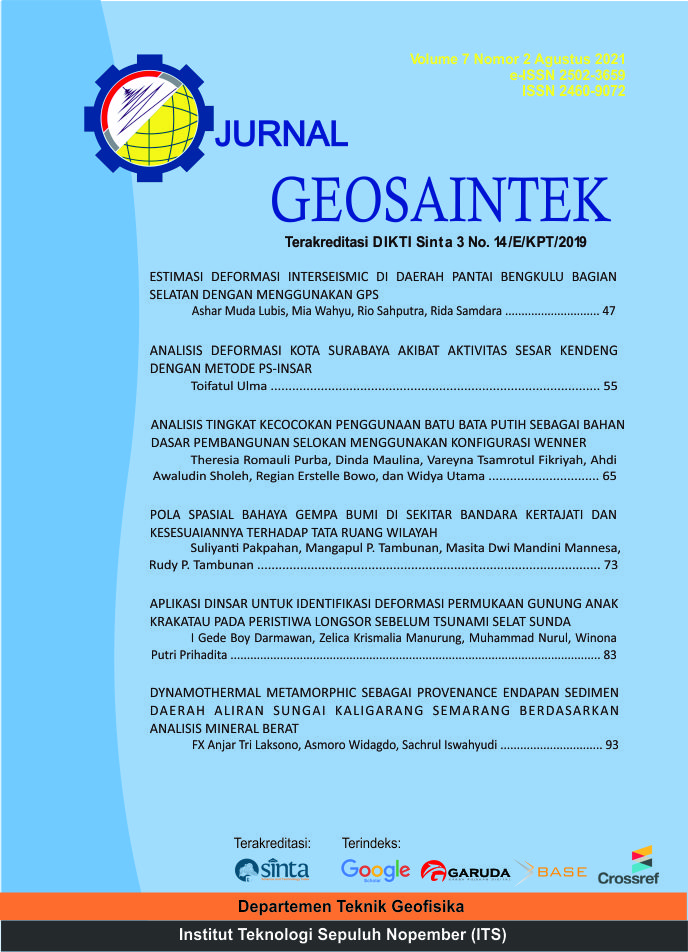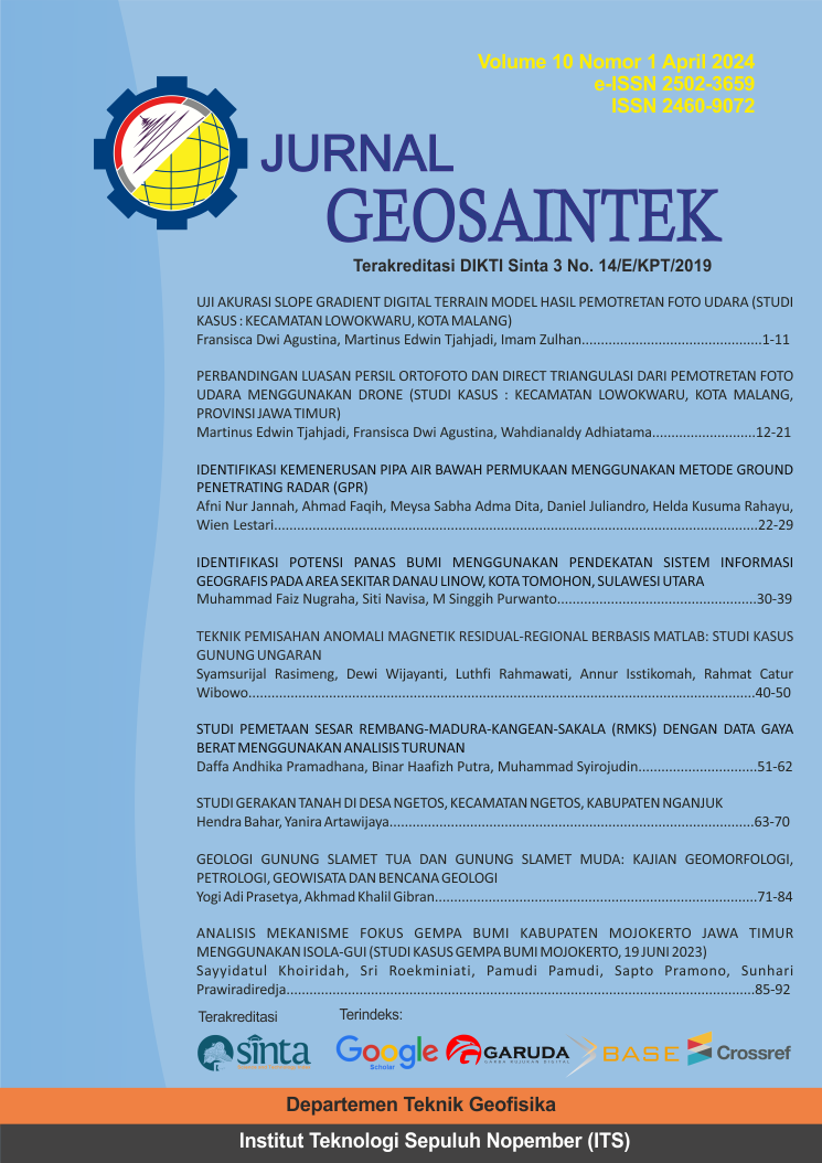 PenerbitJurnal Geosaintek diterbitkan oleh ITS bekerja sama dengan Himpunan Ahli Geofisika Indonesia (HAGI)