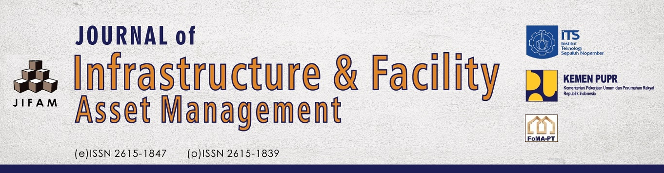 Journal of Infrastructre & Facility Asset Management is aimed to develop Infrastructure & Facility Asset Management Sciences and Knowledge. This journal accepts paper contains the results of research or knowledge development in Infrastructure & Facility Asset Management from anywhere.