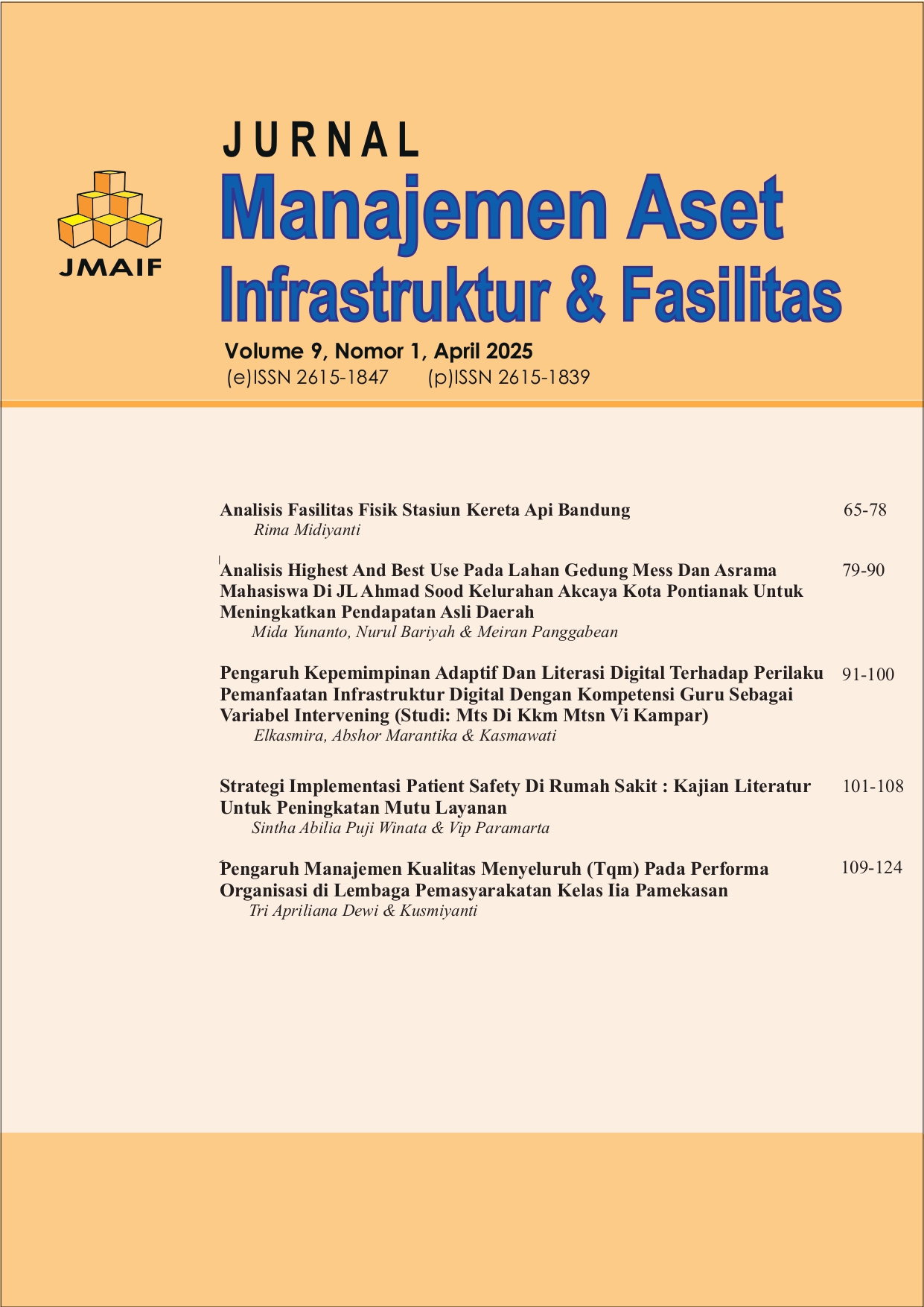 Bergabunglah dengan ratusan peneliti yang menerbitkan karya di Jurnal Manajemen Aset Infrastruktur & Fasilitas