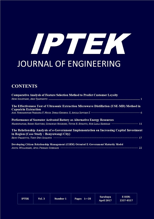 This work is licensed under a Creative Commons Attribution 4.0 International License. IPTEK The Journal of Engineering published by Pusat Publikasi Ilmiah, Institut Teknologi Sepuluh Nopember.