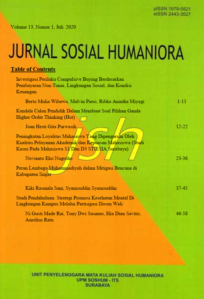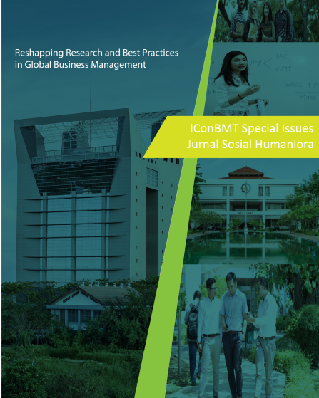 Jurnal Sosial Humaniora (JSH), as one of our proud partner, is a reputable Journal publisher that provides high quality articles. JSH is also indexed by many reputable indexes, which indicates the trust of many index providers to acknowledge the well-prepared research publications. We, IConBMT 2019, are lucky enough to be one of the partners that is trusted to provide the great quality of research articles. Plotted in option 4 publication, we are glad to announce that these articles are eligible for JSH publication. The entire articles have unique approaches in advancing the great contributors to the field of business and management as well as the social aspect perspectives.
